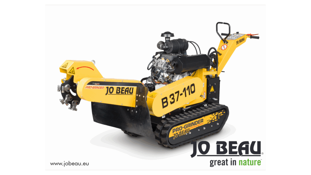 Zusammen mit dem Modell B31-110 ist die B37-110 vollautomatische Baumstumpffräse mit ihrer Breite von nur 74 cm und mit breiten Raupenketten, die meist kompakte in ihre Kategorie. Die größten Unterschiede sind doppelte Arbeitsgeschwindigkeit, ein kräftiger ökologischer Motor & eine speziell entwickelte Fräsescheibe ‘GrinDisc™’, ausgerüstet mit 12 Greenteeth 900-Serien Schleifrädern.