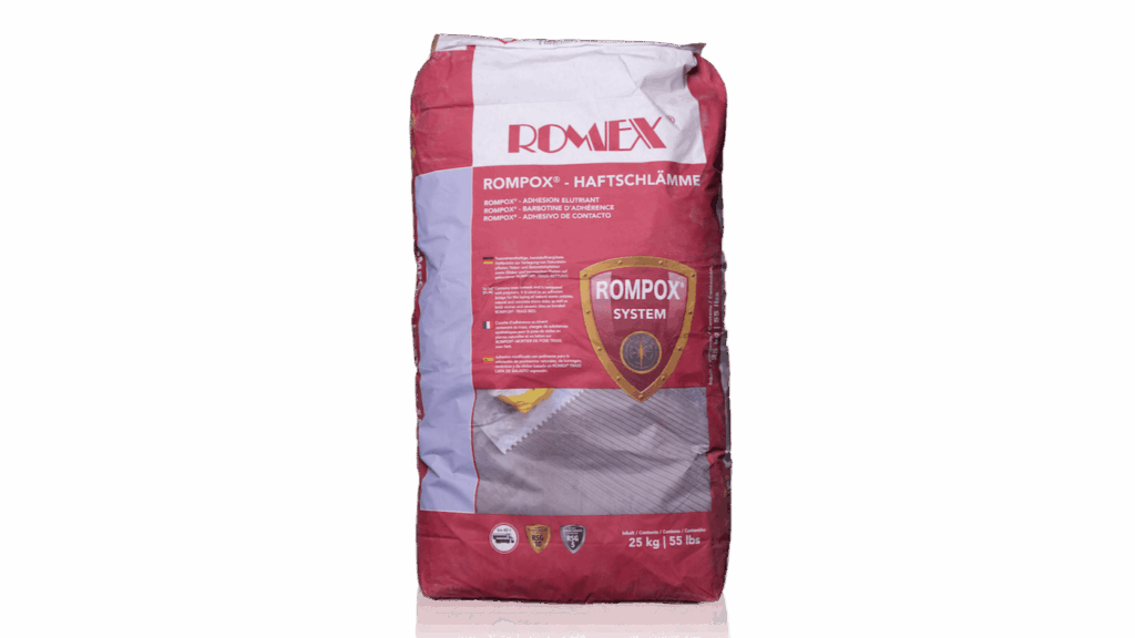 Es stellt eine Verbindung zwischen allen mit ROMFIX® Drainagemörtel verarbeiteten Pflasterarten her. Dadurch bilden Pflaster und Unterbau ein solides Paket, das Setzungen und loses Pflaster ausschließt. Diese Haftbrücke wird so auf den Belag aufgebracht, dass sie gut auf dem Drainagemörtel haftet.